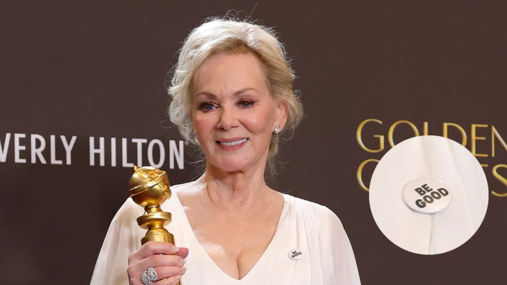 Jean Smart: Ganadora del Globo de Oro por Hacks, lució el pin en su vestido incluso mientras aceptaba su premio en el escenario.