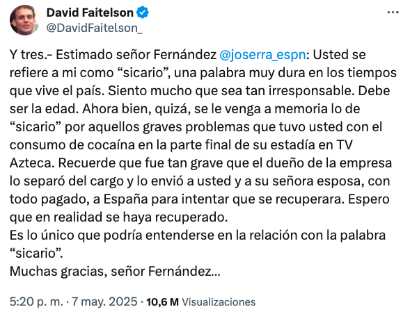 David Faitelson a través de su red social se descosió en contra de José Ramón Fernández. |