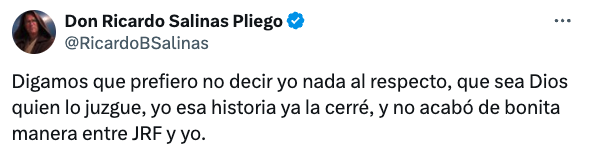 Al buscar la versión del Dueño de la televisora del Ajusco Ricardo Salinas, se limitó a decir que la historia con Joserra no acabó bien, pese a que en su momento fue su comentarista estrella.